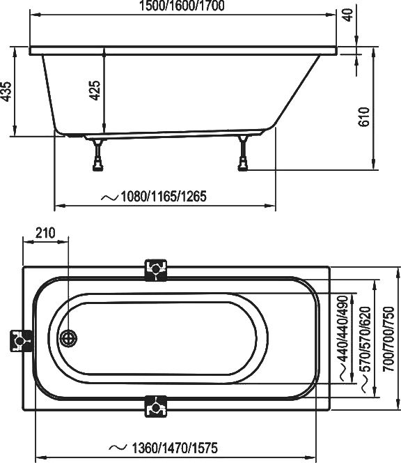 - Акриловая ванна Ravak Domino C631000000 170x75
