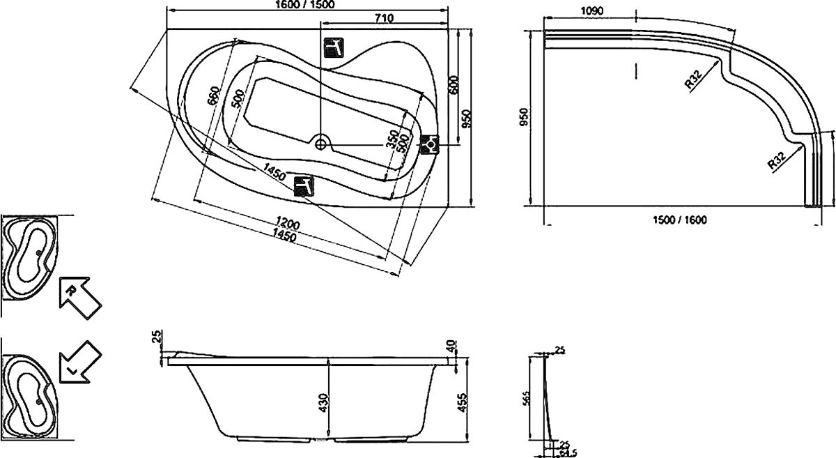 - Акриловая ванна Ravak Rosa 95 160x95 R с ножками