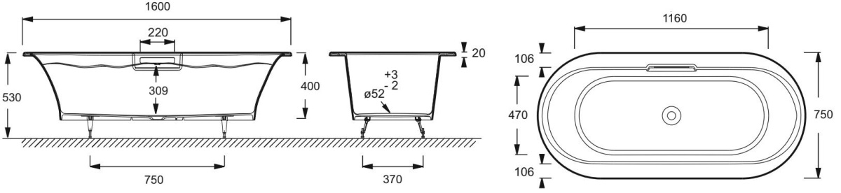 - Чугунная ванна Jacob Delafon Volute 160x75
