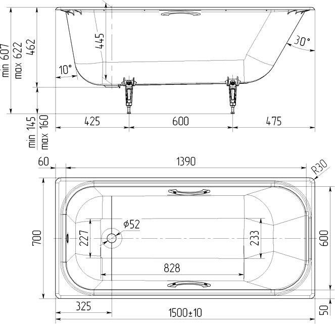 - Чугунная ванна Maroni Aura lux 150x70, с ручками