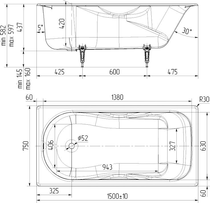 - Чугунная ванна Maroni Grande lux 150x75, с ручками