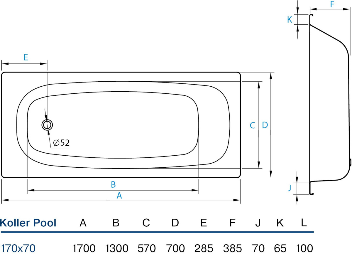 - Стальная ванна Koller Pool 170x70