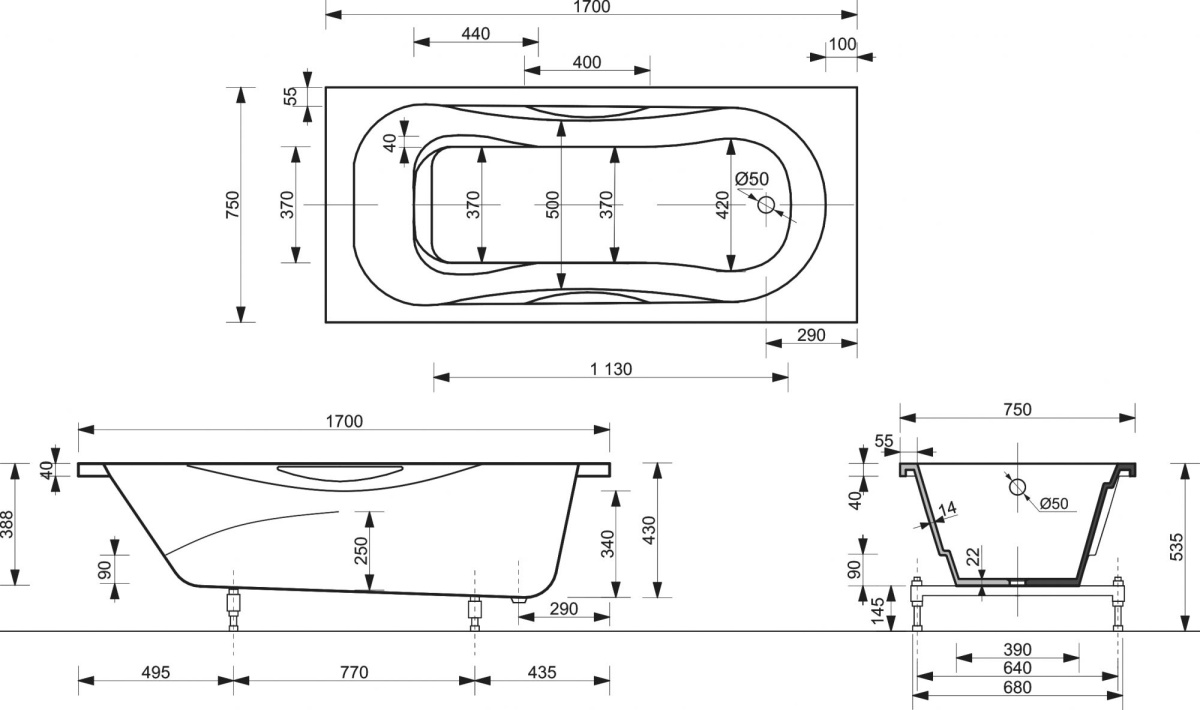 - Ванна из искусственного камня Эстет Эллис 170x75